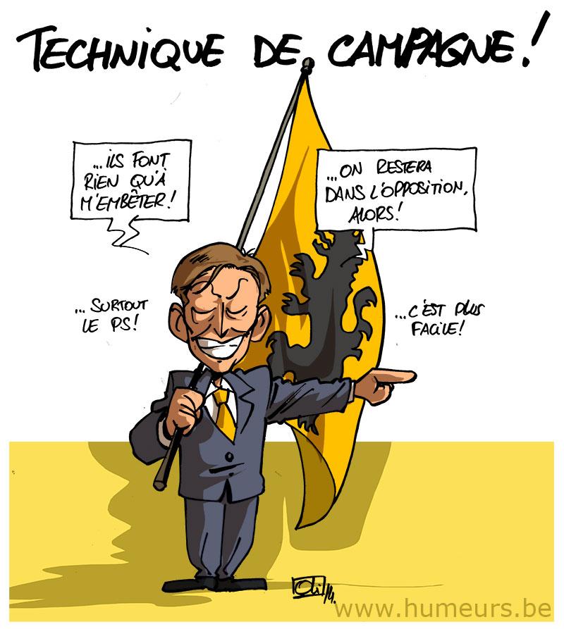 La N-VA est championne pour gagner des élections, c’est un fait, une évidence même. Mais quand il s’agit de faire une coalition, des compromis, et monter dans un gouvernement, là, y a plus personne. Alors, vu comme ça, c’est facile de récolter des voix, des tonnes de voix, même, puisqu’on n’a jamais à mettre en pratique et être confronté à l’échec face à des partenaire et ses électeurs. La question que l’on peut donc légitimement se poser après le meeting de ce weekend, c’est de savoir si le parti nationaliste de Bart De Wever sera capable, avec le score une nouvelle fois historique annoncé, d’aller dans un gouvernement fédéral ! Je pense que s’ils ne le font pas, la N-VA ne fera peut-être plus le même score aux prochaines élections… les gens vont finir par en avoir marre de voter pour un parti qui critique tout, mais ne fait rien, non ?