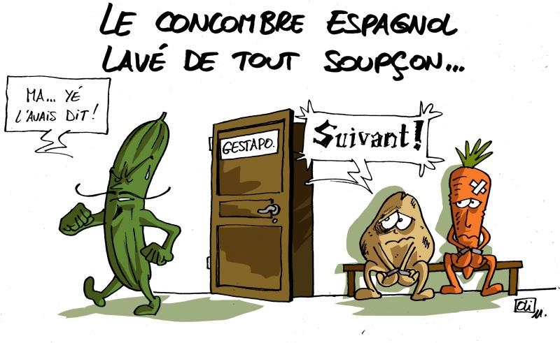 Voilà, c’est dit, ce n’est pas le concombre espagnol qui est à la base de l’émergence de la bactérie E.Coli… Mais qui a donc provoqué cette épidémie en Allemagne qui a déjà causé une quinzaine de décès ? L’enquête se poursuit…