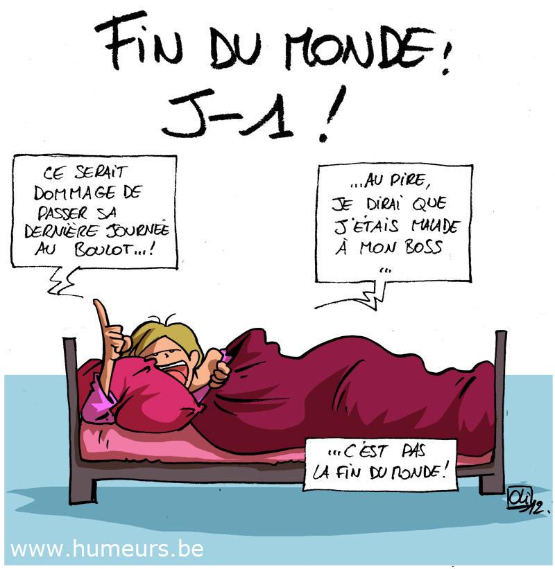 Ça y est… c’est pour demain, le 21/12/2012, date annoncée et interprétée par certains (et par les Mayas) comme étant la date fatidique de la fin de monde ! En dehors de toute considération, que feriez-vous si demain, c’était effectivement la fin du monde ?