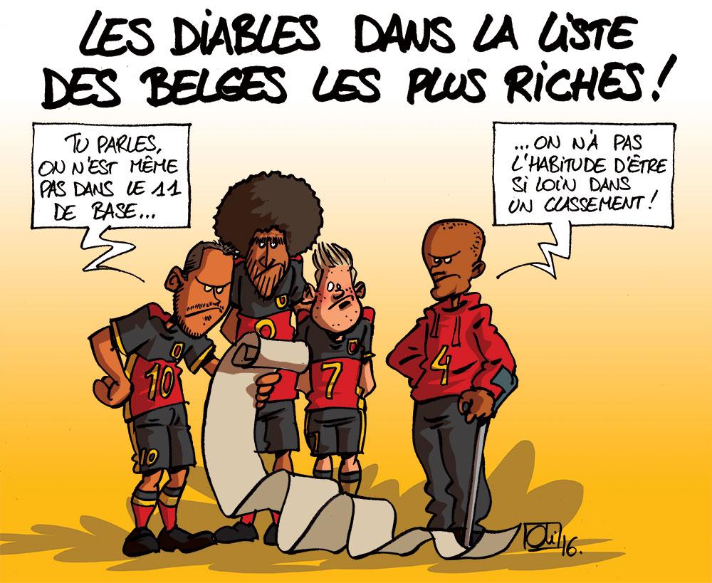 11 Diables Rouges font partie de la liste des personnes les plus riches de Belgique. Néanmoins, ils sont loin des premiers, les familles d’AB Inbev, Albert Frère et la famille Colruyt, puisque le premier diable, Eden Hazard, truste la 321e place.