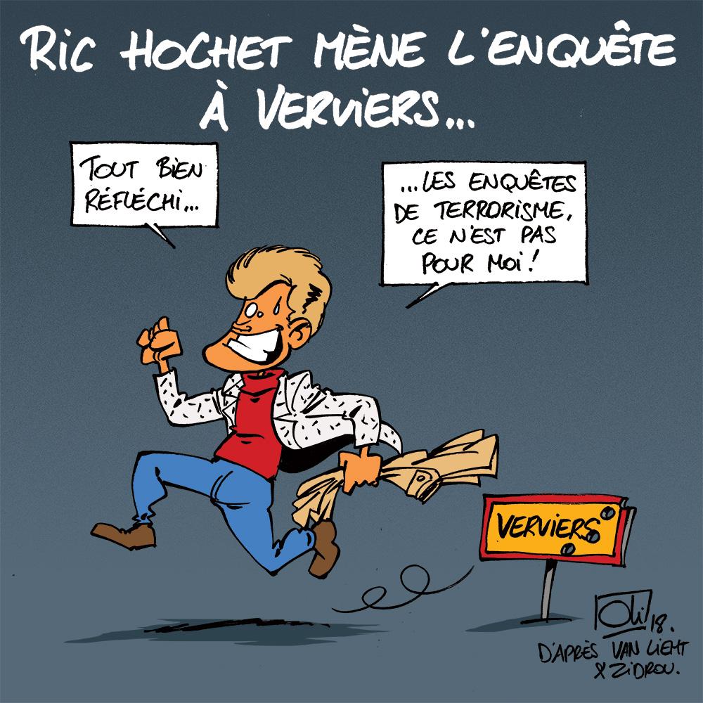Ric Hochet, le héros de BD créé par Tibet et A-P Duchâteau, est de retour dans des aventures verviétoises, signées Van Liemt et Zidrou. On y retrouve la ville de Verviers et les éditions Marabout dans une enquête trépidante, bien loin des relents terroristes de la ville !