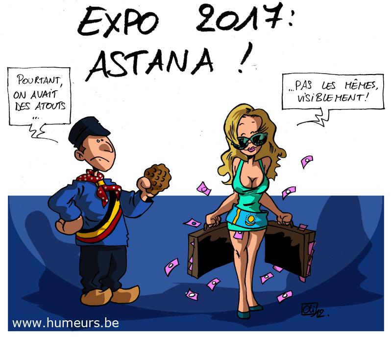 Alors que la ville kazakh avait chipé sur le fil la candidature pour l’exposition internationale 2017 à la ville de Liège, Astana éprouve actuellement de cruelles difficultés à remplir ses stands et pavillons ! Si bien que la capitale du Kazakhstan envisagerait de demander de l’aide à Liège… un comble !