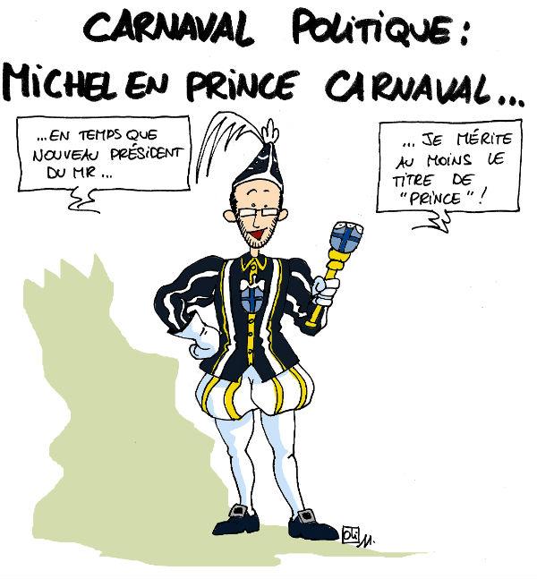 Carnaval Politique – Michel en Prince Carnaval ! La semaine de carnaval politique se poursuit avec Charles Michel, jeune et frai nouveau président du MR en Prince Carnaval !