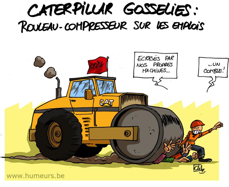 Aujourd’hui, dans l’usine de Caterpillar de Gosselies, un conseil d’entreprise extraordinaire a été convoqué par la direction, avec pour ordre du jour « l’avenir du site ». Il s’agirait d’annoncer la suppression de 850 emplois sur les 4000 que compte l’entreprise de Gosselies. Un coup dur, alors même que Caterpillar avait déjà mis en place des mesures de chômage économique…