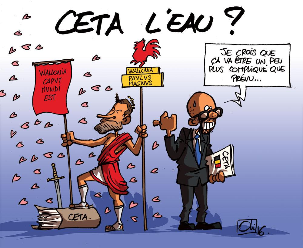 Le traité de libre échange entre l’Europe et le Canada (CETA) est au devant de la scène. En effet, si les 28 parlements européens ont accepté le CETA, la Wallonie et ses 3,5 millions d’habitants bloquent la ratification de ce traité ! En cause ? Le fédéralisme à la belge, l’autonomie accrue des régions et, qui sait, la pression du PTB sur un PS qui ne sait plus quoi faire (entre ça et la vente de mazout) pour récupérer des électeurs. Le problème n’est pas le fond, mais bien la forme. Comment moins de 1% de la population européenne, soit les 3,5 millions de wallons, peuvent mettre en péril un accord qu’ont ratifié plus de 500 millions d’européens ? C’est l’essence même de la démocratie européenne qui est mise à mal… Il n’y a plus qu’a espérer que cette défiance ne signe pas l’arrêt de mort du projet européen…
