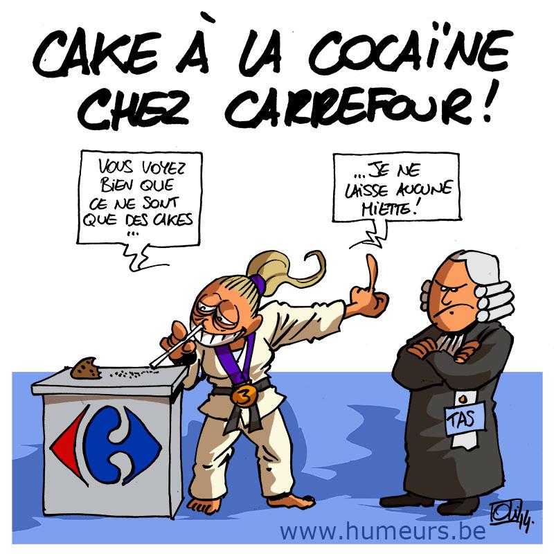 Carrefour Argentine proposait des cakes sur lesquels était indiqué dans les ingrédients : « Cocaïne : 12% ». La marque a très vite réagit et affirme qu’il s’agissait là de l’oeuvre d’un petit plaisantin. Les cakes dont l’étiquette était compromise ont été retirés de la vente aussi tôt. Carrefour insiste sur le fait qu’aucun de ses produit vendu ne contient d’ingrédient caché. Bien sûr, l’info a déjà fait le tour, et les blague ne manque pas. Une solution pour la défense de Charline Van Snick devant le Tribunal Arbitral du Sport (TAS) qu’elle a saisi hier, pour sa condamnation ?