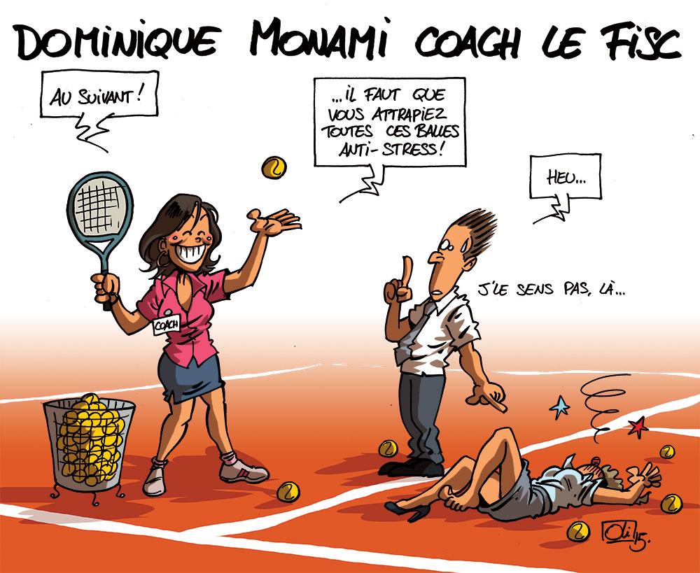 Dominique Monami coach le FISC L’ancienne championne de tennis, Dominique Monami, s’est lancée dans le coaching sportif et d’entreprise. Les derniers qui ont fait appel à ses services ne sont autres que les agents du FISC, qui sont submergés et stressés.