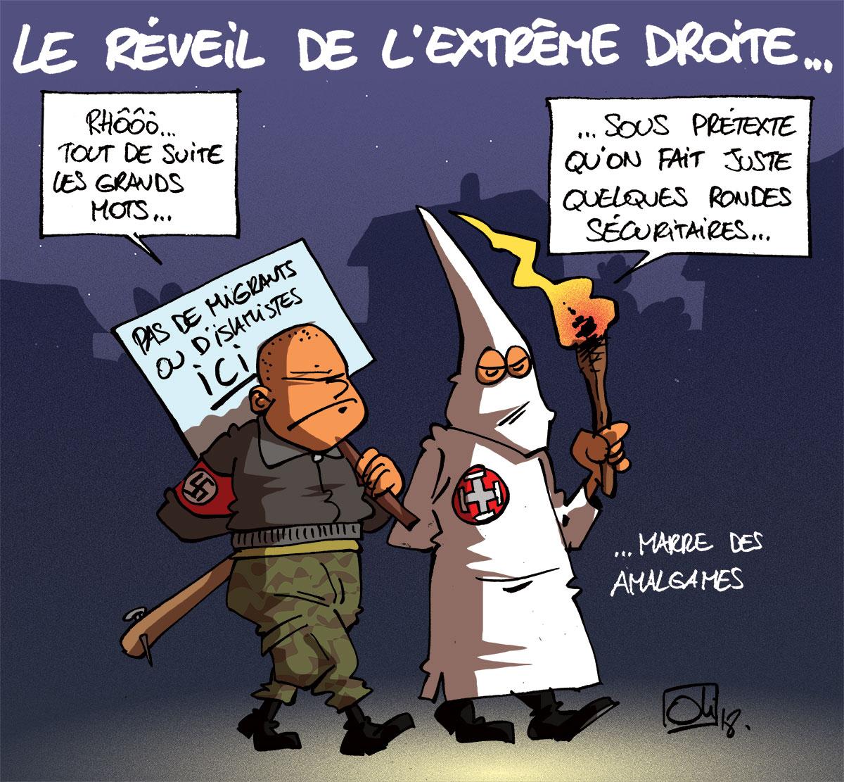 L’extrême droite fait son retour en force en Belgique. Les causes principales en seraient les attentats de Paris et Bruxelles ainsi que la crise migratoire. C’est avant tout un regain de tension envers tout ce qui touche à l’islam, caractérisée par des initiatives citoyennes, soutenue par une haine croissante sur les réseaux sociaux.