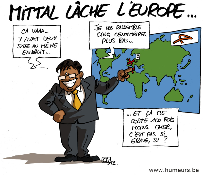 Après Liège, le groupe sidérurgique indien a décidé de fermer les hauts-fourneaux de Florange, en France, tout en promettant un investissement conséquent dans les phases à froid… à peu près la même solution qu’à Liège. Alors, Mittal est-il en train d’abandonner l’Europe, est-ce une stratégie de pourrissement et d’abandon inéluctable, bien calculée ? Toujours est-il que le gouvernement français fait son possible pour essayer de retrouver un repreneur et un reclassement… L’acier, c’est plus aussi solide, visiblement !