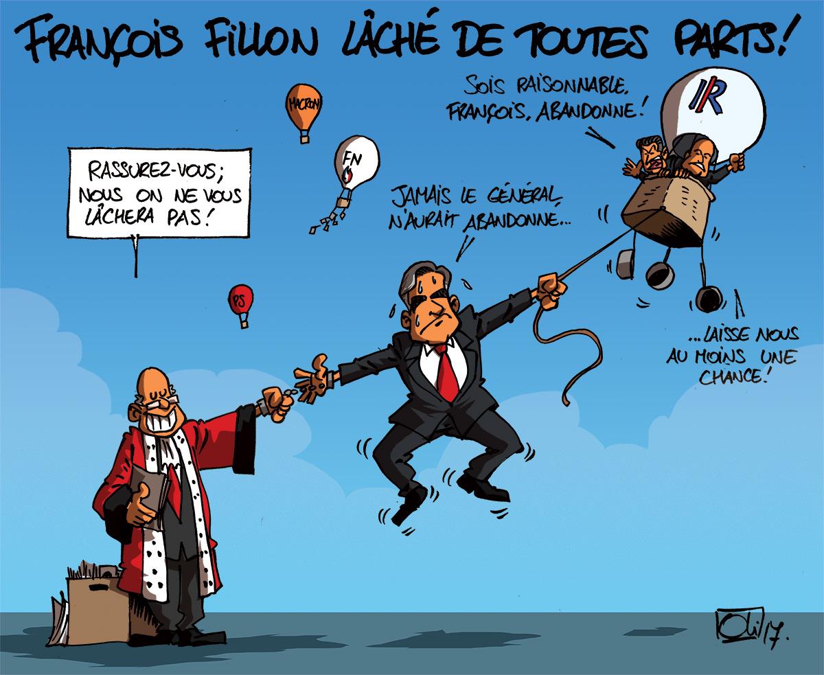 Les chances de François Fillon au poste de président de la république, en France, s’amenuisent de plus en plus ! Après sa mise en examen par la justice, sa volonté de continuer à tout prix, le désistement de ses soutiens (UDI, Les jeunes avec Fillon, son chef de campagne…), Sarkozy qui commence à douter et Alain Juppé en embuscade, ça commence à faire beaucoup !