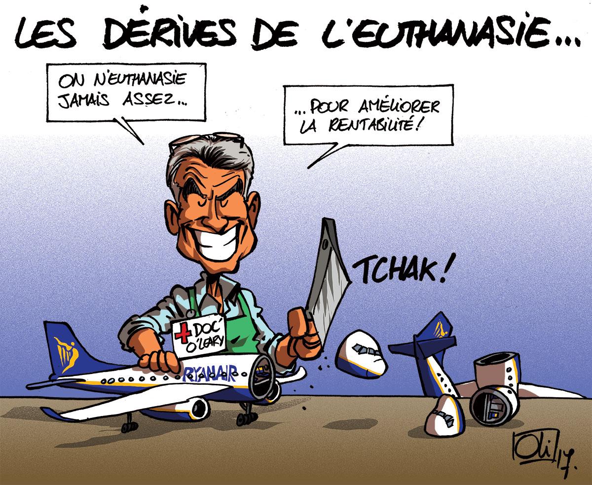 Alors que des universitaires belges dénoncent certaines dérives dans les euthanasies en Belgique, la compagnie low-cost irlandaise, Ryanair, supprime près de 2% de ses vols européens. En cause, combler les retards. Mais officieusement, la compagnie manquerait de pilotes.