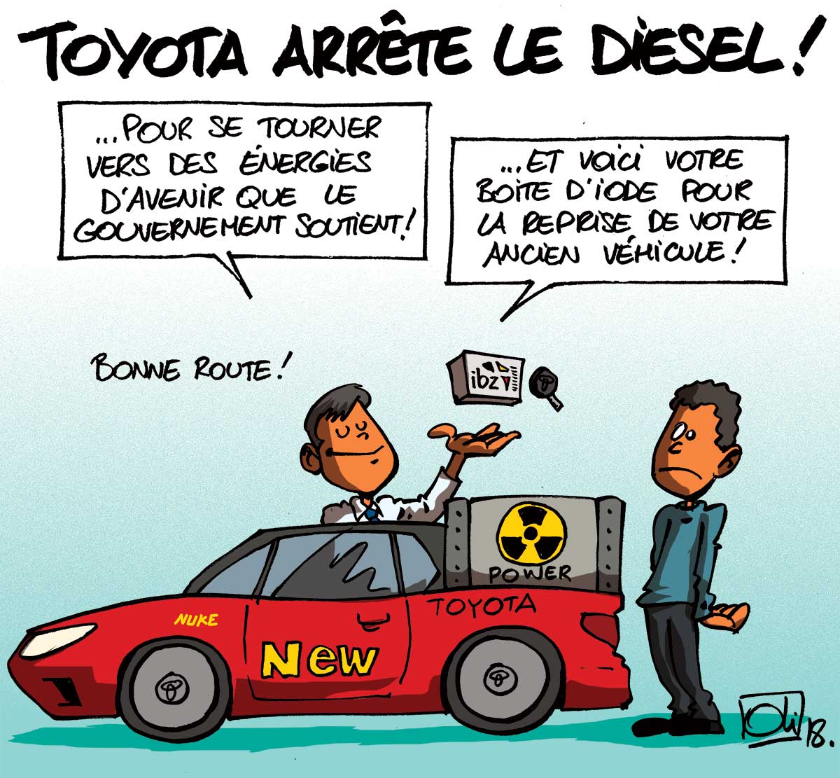 Auteur OliPublié le 7 mars 20188 mars 2018Catégories Politique, actualités, SudpresseÉtiquettes caricature, cartoon, dessin, diesel, essence, gouvernement, iode, Jambon, nucléaire, Oli, Toyota, voitureLaisser un commentaire sur Toyota annonce la fin du diesel !