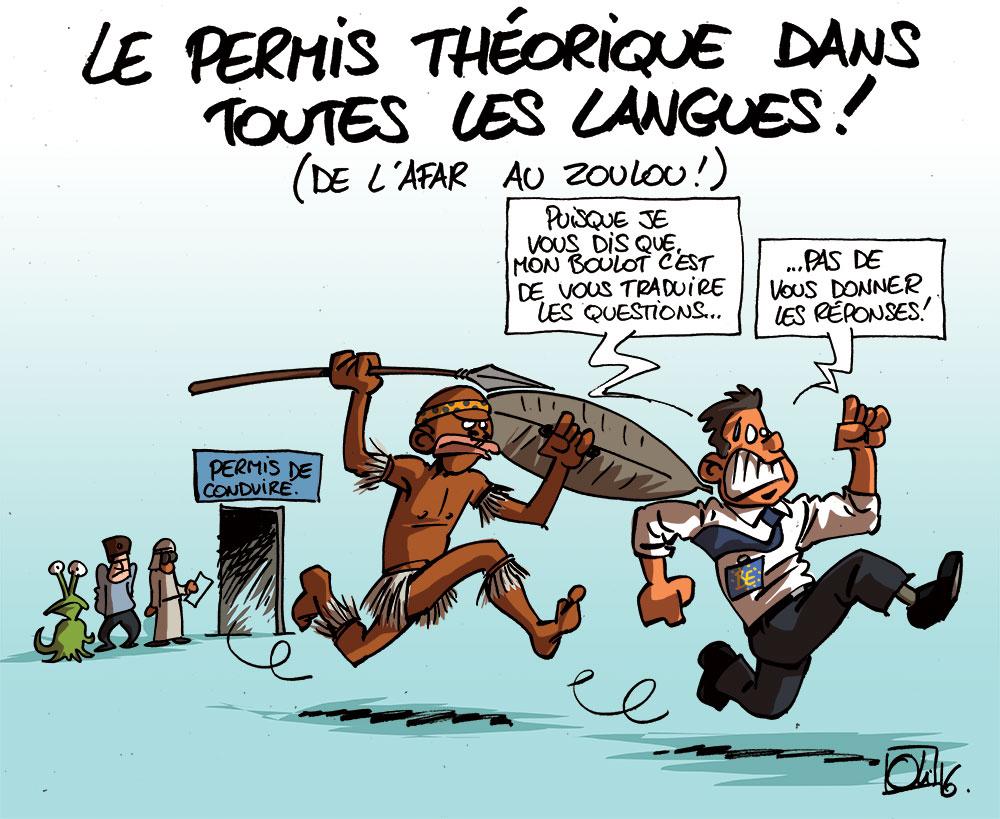 Le permis de conduire théorique peut être passé dans n’importe quelle langue du monde reconnue. Il suffit que l’un des 8 centres possède un traducteur agréé. Ainsi, on sait que les personnes parlant le russe réussissent à plus de 75% leurs examens, alors que ceux s’exprimant en zoulous affichent un taux de réussite de 0%…