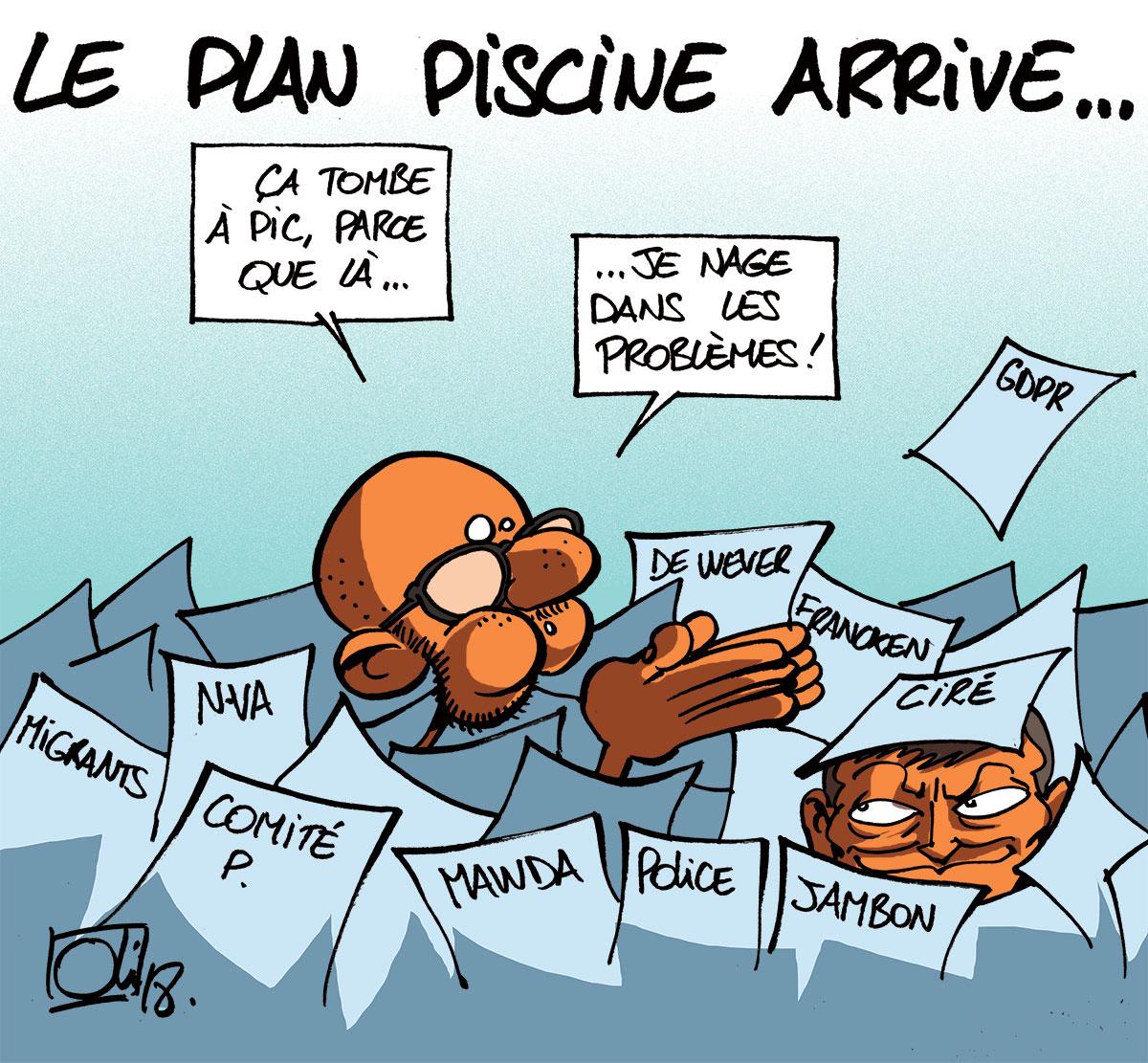 Un « plan piscine » arrive pour la Wallonie, histoire de réhabiliter ou rafraîchir les piscines. Voilà qui pourrait aider le premier ministre, qui se noie et boit la tasse dans l’affaire Mawda, cette petite fille kurde de deux ans morte lors d’une course-poursuite avec la police.