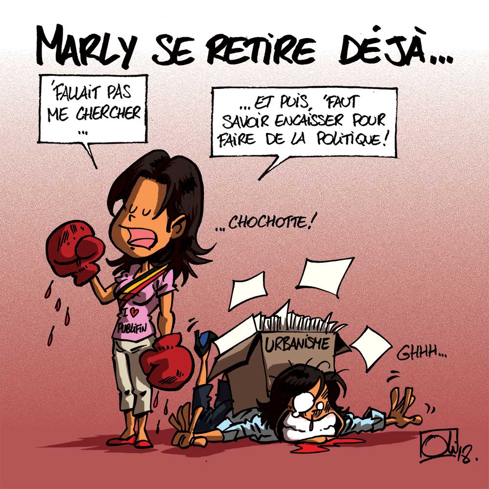Nathalie Marly aura été l’étoile filante de la politique verviétoise, puisque moins d’un mois après son annonce de rejoindre le MR, elle décide de se retirer de la politique. Muriel Targnion serait la principale cause de son départ, après la publication d’un dossier d’urbanisme.
