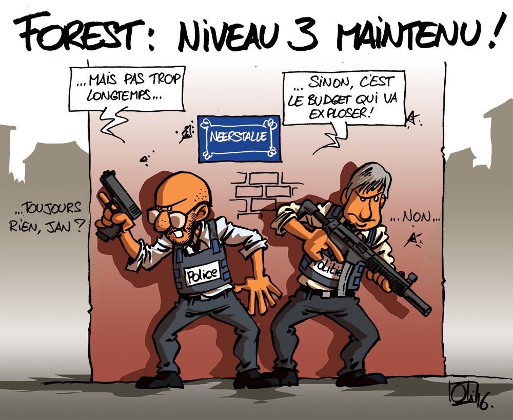 Le gouvernement, emmené par le premier ministre Charles Michel et le ministre de l’intérieur Jan Jambon, suit les recommandations de l’OCAM et maintient le niveau de menace terroriste à 3 ! La police recherche toujours 2 suspects…