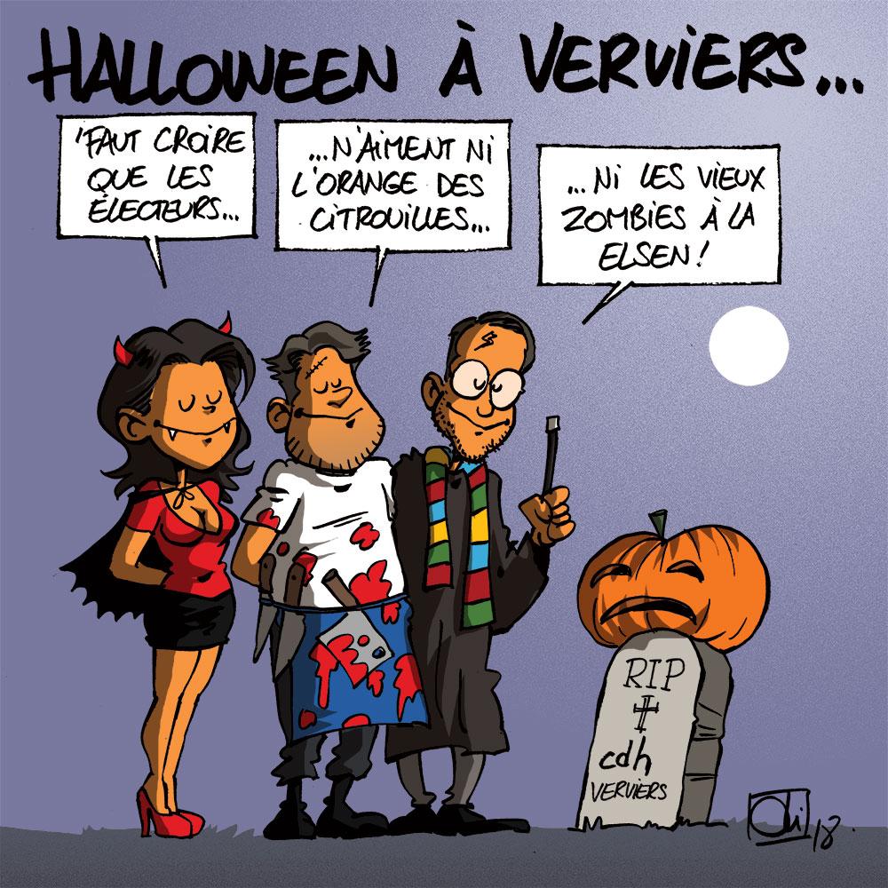 Halloween à Verviers ! Muriel Targnion, Maxime Degey et Jean-François Chefneux ont fêté Halloween sans Marc Elsen et le CDH, grand perdant des élections communales à Verviers !