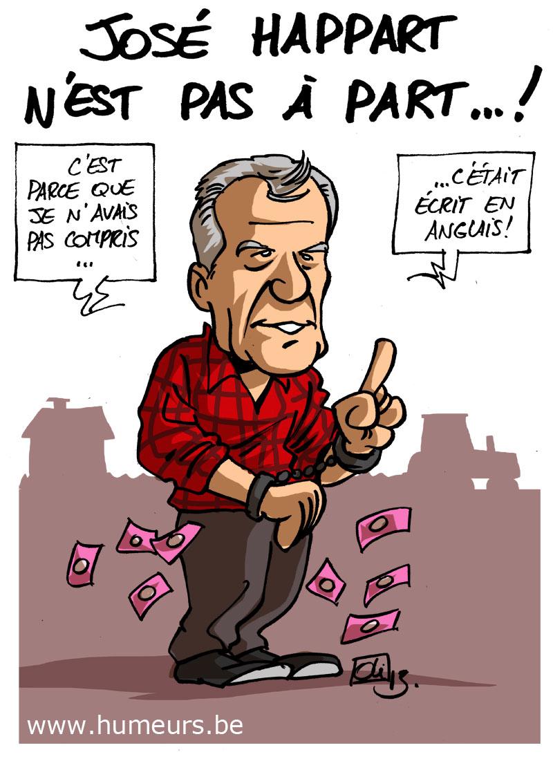 José Happart, l’ancien président du parlement wallon et ex-ministre de l’agriculture, a été inculpé, hier, de corruption et de faux en écriture ! La justice soupçonne le président de l’aéroport de Bierset d’avoir obtenu des prix en échange d’autres promesses de chantiers à des entreprises, ainsi que la construction d’une villa pour une ex-collaboratrice ! Le PS une nouvelle fois entaché par un scandale financier et de corruption ! Alors, José Happart n’est finalement pas à part des autres parvenus ?