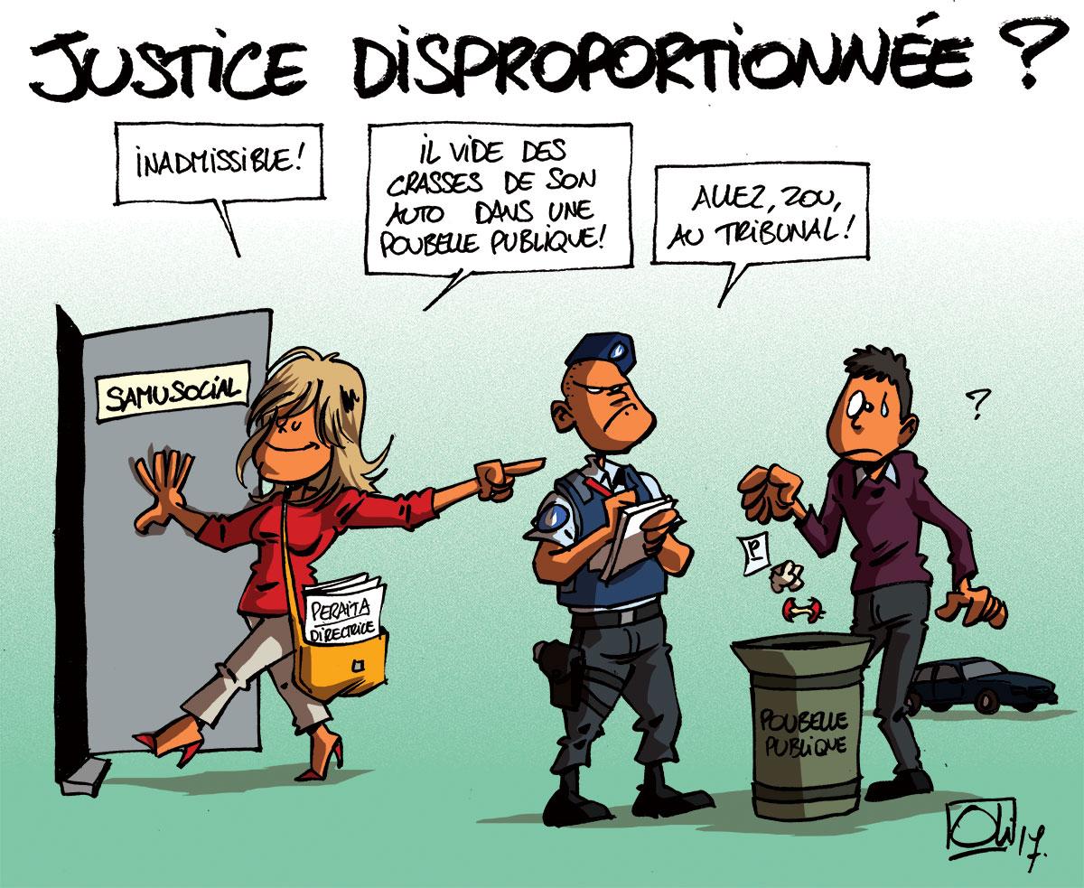 La justice donne une drôle d’image d’elle-même en Belgique. Un homme vient d’être condamné à une amende de 200€ après un passage au tribunal pour quelques déchets issus de sa voiture qu’il a déposés dans une poubelle publique. Et pendant ce temps-là, Pascale Peraita revient comme présidente du Samusocial. Tout va bien.