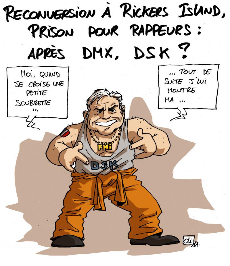 Dominique Strauss-Kahn, directeur du FMI, est toujours incarcéré à la prison de Rickers Island, à New-York. Cette énorme prison a déjà vu défiler pas mal de vedettes, en particulier des rappeurs (dont DMX ou Prodigy). Du côté du FMI et du PS, on envisage sérieusement le remplacement de DSK aux postes qu’il occupait… Tout comme le fait qu’il ne sera pas de la course à la présidence de la France. Alors, DSK, ça sonne bien comme nom de rappeur, non ?