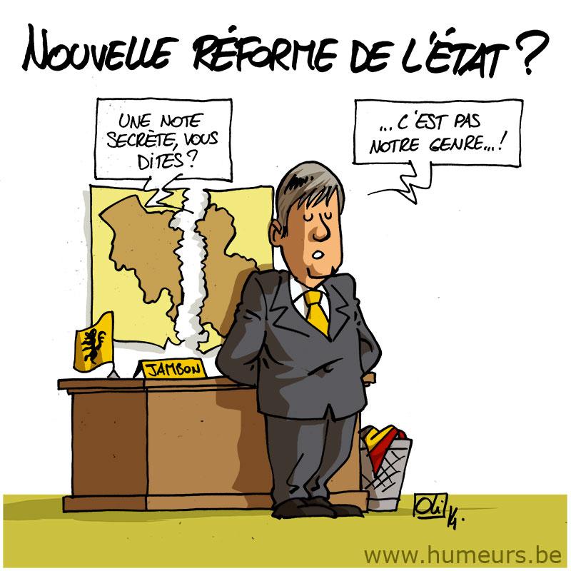 C’est le nouveau ministre de l’intérieur qui l’aurait laissé entendre lors d’une rencontre avec des jeunes KVHK, cercle d’étudiants nationalistes, un accord secret sur une prochaine réforme de l’état serait dans les cartons. Par ailleurs, Jan Jambon aurait également laissé entendre qu’il aurait du mal avec son nouveau costume de vice-premier ministre du fédéral et de ministre de l’intérieur. Il a d’ailleurs fait enlever tous les drapeaux belges de son cabinet.