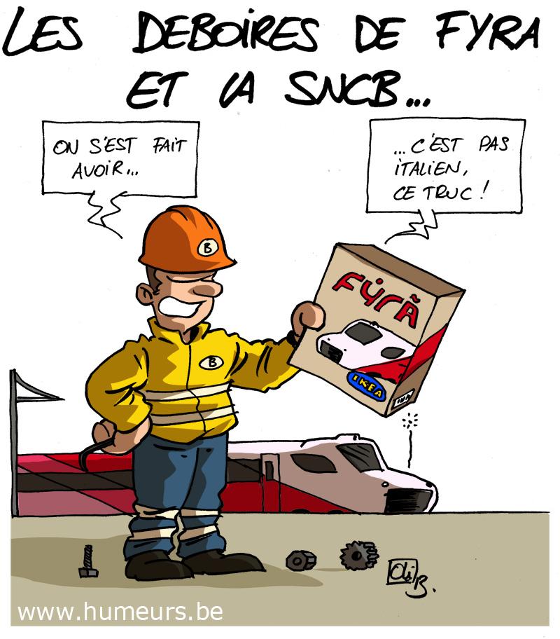 Le nouveau train à grande vitesse FYRA, et projet belgo-hollandais, est au point mort. Ce train était censé relier Bruxelles à Amsterdam en un peu plus de deux heures. Après la livraison de seulement 9 rames, ces dernières enchaînent les problèmes techniques, de plus en plus graves, causant retards et annulations un peu partout. La sécurité est secouée à un point tel que la SNCB et les chemins de fer hollandais ont décidé de laisser 3 mois au constructeur italien pour prouver la fiabilité de ses machines, faute de quoi, les contrats seront cassés. De là à croire que la SNCB s’est faite livré un train en kit, il n’y a qu’un pas…