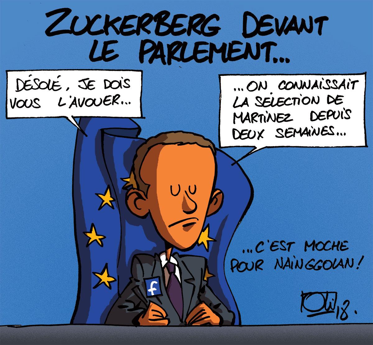 Le fondateur de Facebook, Mark Zuckerberg, est venu écouter les doléances et apporter des réponses aux questions des députés européens. Le créateur du célèbre réseau social a cependant laissé ses hôtes sur leur faim tant il a tourné autour du pot et évité les questions trop pointues ou de fond. À trois jours de la mise en place du GDPR (RGPD), voilà qui devrait éveiller une nouvelle fois la vigilance des européens. Et pendant ce temps, la Belgique ne se remet pas de la non-sélection de Radja Nainggolan par Martinez dans les Diables Rouges qui iront à la coupe du monde de football en Russie.