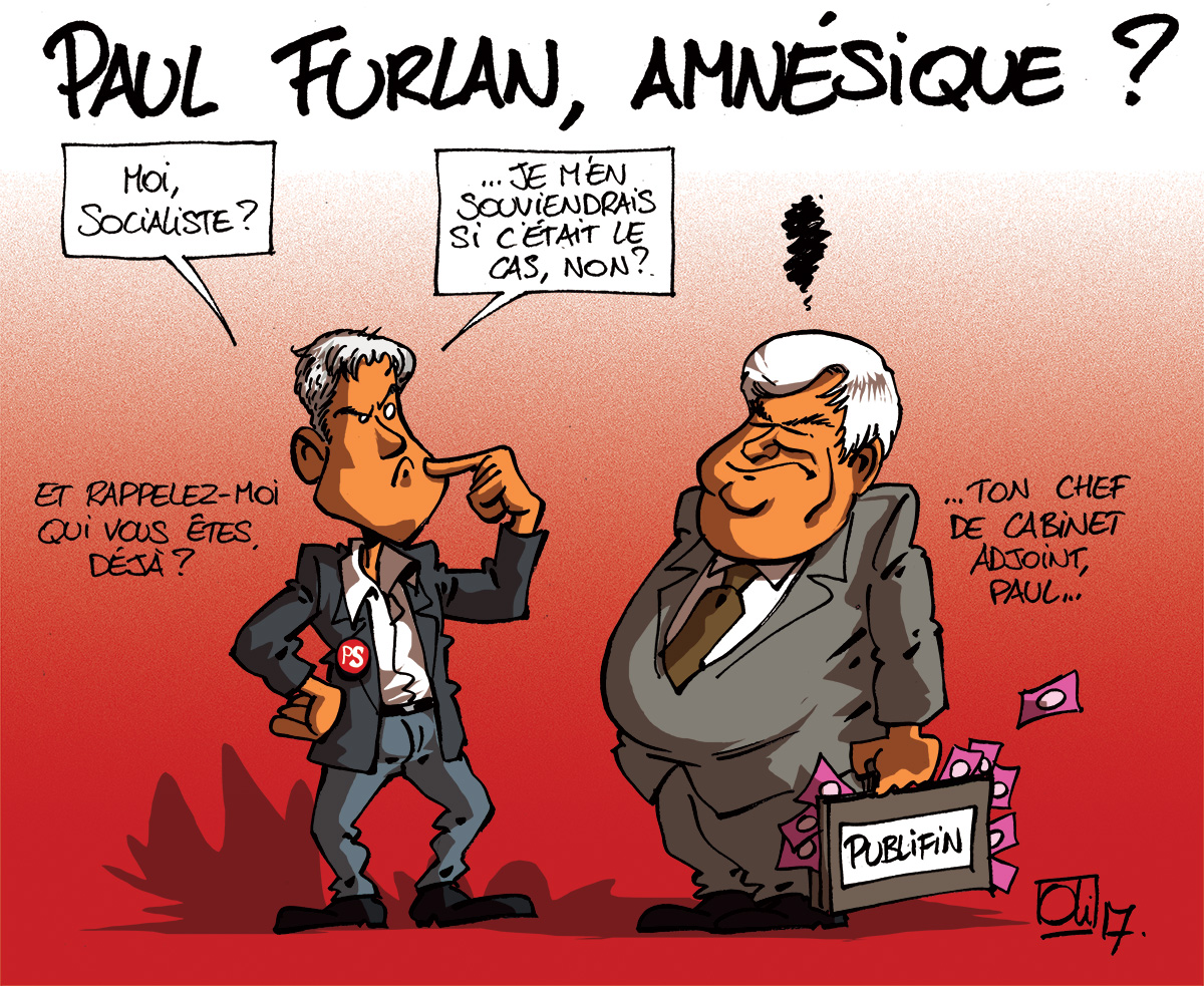 Le ministre socialiste, Paul Furlan, est secoué par les scandales liés aux prestations rémunérées de Publifin. En cause ? Les 153.000€ que son chef de cabinet adjoint a reçu ces dernières années. En effet, si le ministre ignorait tous les mandats de son collaborateur, c’est grave, et s’il le savait, mais prétend que non, c’est aussi grave !