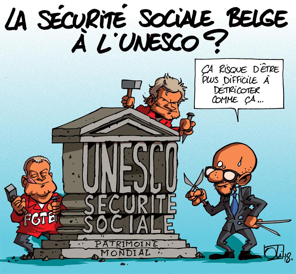 La FGTB, Solidaris et les Femmes Prévoyantes Socialistes lancent une pétition pour inscrire la sécurité sociale belge au patrimoine mondial immatériel de l’UNESCO ! Thierry Bodson et Robert Vertenueil veulent ainsi protester contre les coupes incessantes du gouvernement de Charles Michel.