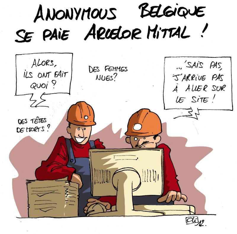 Anonymous Belgique pirate le site d’ArcelorMittal Anonymous Belgique a piraté le site web d’ArcelorMittal. Ce dernier est désormais inaccessible ! Véritable attaque ou simple démonstration de force ?