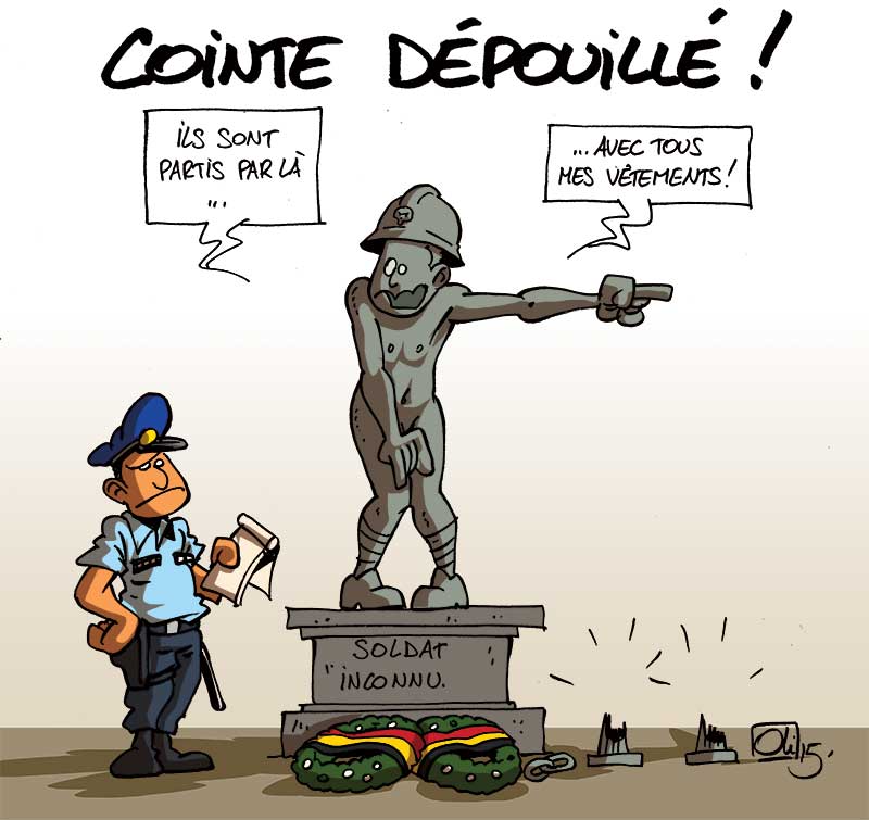 Auteur OliPublié le 14 novembre 201513 novembre 2015Catégories Politique, actualitésÉtiquettes armistice, Cointe, dessin, Liège, monument, Oli, soldat inconnuLaisser un commentaire sur Vol de bronzes