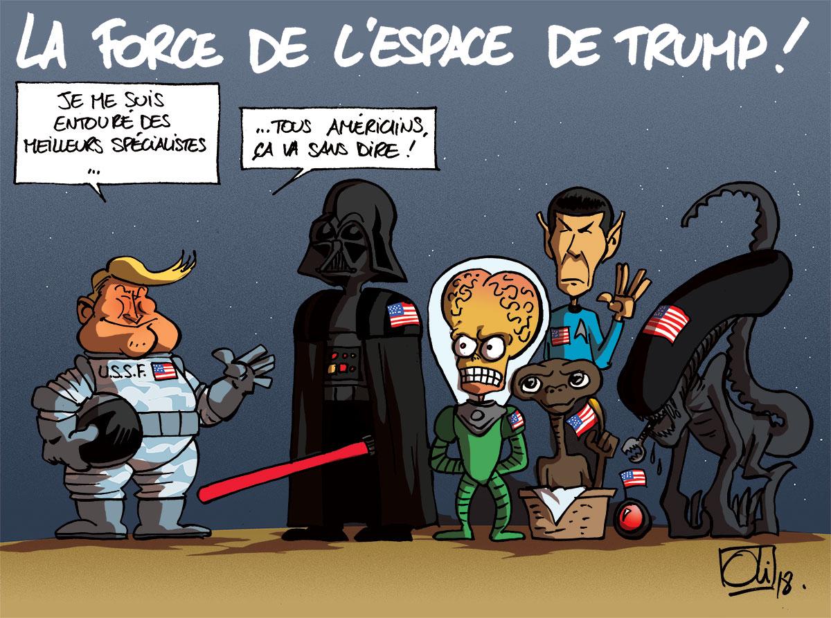 Le président américain, Donald Trump, a annoncé la création à l’aide d’un large financement, d’une armée de l’espace ! Verra-t-on bientôt Alien, des martiens, M. Spock, E.T., Hal ou Dark Vador au côté des USA ?