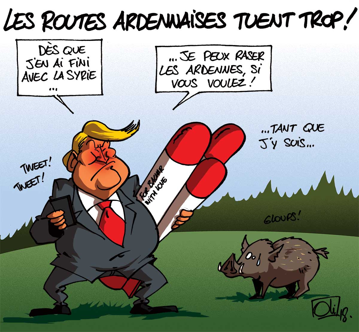 Ducarme confirme l’interdiction du glyphosate, et donc, la fin du roundup pour les particuliers ! Pendant ce temps-là, en Syrie, le régime est accusé d’avoir fait une nouvelle fois usage d’armes chimiques, à Douma. Les protagonistes se perdent en invectives, s’accusant mutuellement de mensonges. On parle de gaz sarin, moutarde ou chlore.