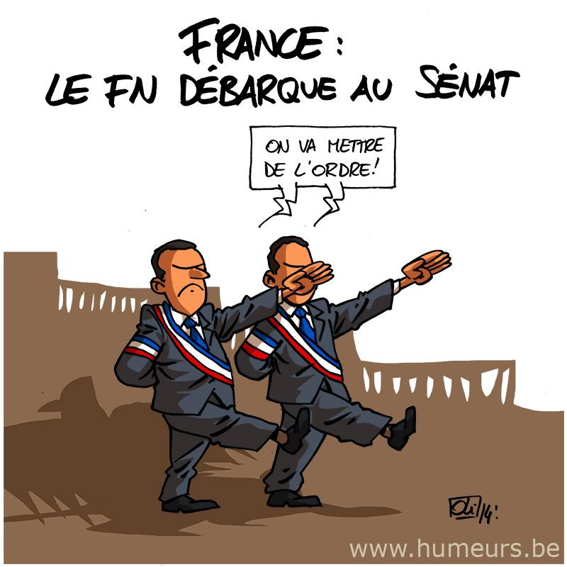 3e gros revers électorales pour le président français François Hollande : La droite, composée du tandem UMP – l’UDI, s’est octroyé la majorité absolue au Sénat. Après les municipales de mars et les européennes de mai, c’est une nouvelle claque pour Hollande. Cette victoire au Sénat n’est pas un problème à court terme pour le PS, car l’Assemblée Nationale garde plus de poids que le Sénat, mais c’est un très mauvais signal pour 2017 qui tombe en même temps que le retour en politique de Nicolas Sarkozy. Quant au FN de Marine Le Pen, il grappille deux sièges au Sénat, chose qui n’était arrivée sous la Ve République.