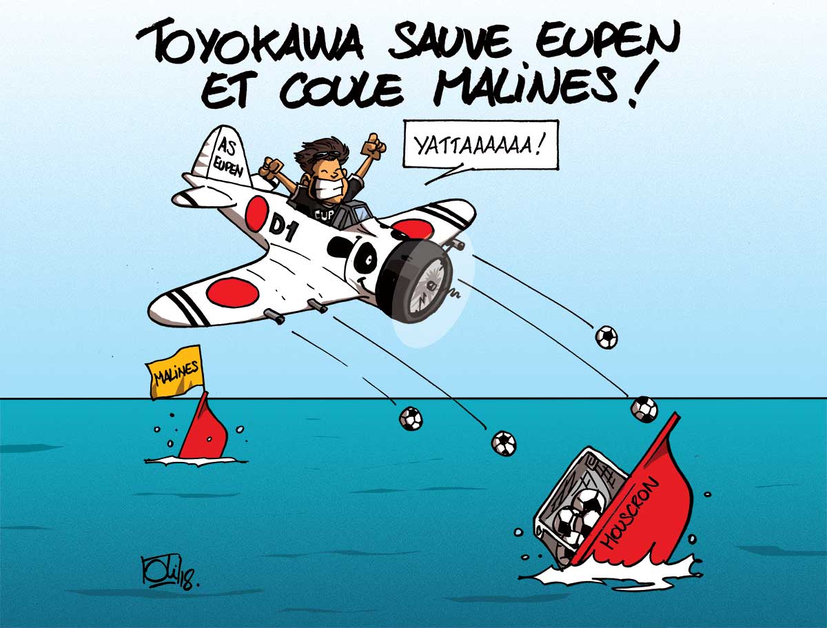 Eupen reste en D1 ! L’équipe de football de l’AS Eupen reste en D1 grâce à Yuta Toyokawa, qui a mis 3 des 4 buts face à Mouscron. C’est Malines qui se retrouve D1B.